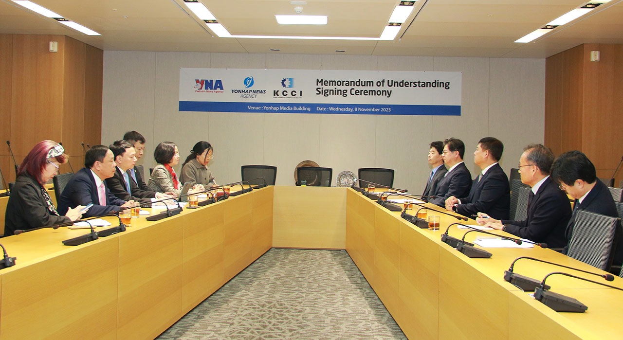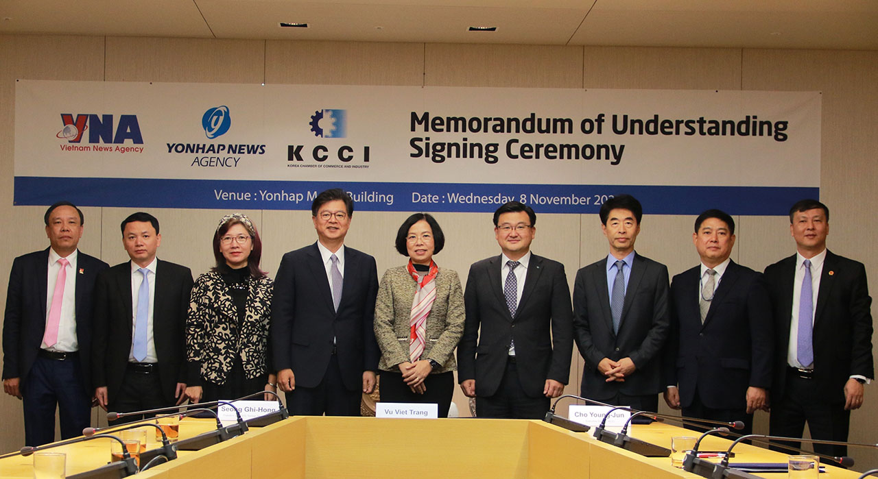 Nhân dịp này, TTXVN, Yonhap cùng Phòng Thương mại và Công nghiệp Hàn Quốc (KCCI) đã ký Biên bản ghi nhớ về hỗ trợ hoạt động trách nhiệm xã hội của các doanh nghiệp (CSR) Hàn Quốc đầu tư tại Việt Nam.