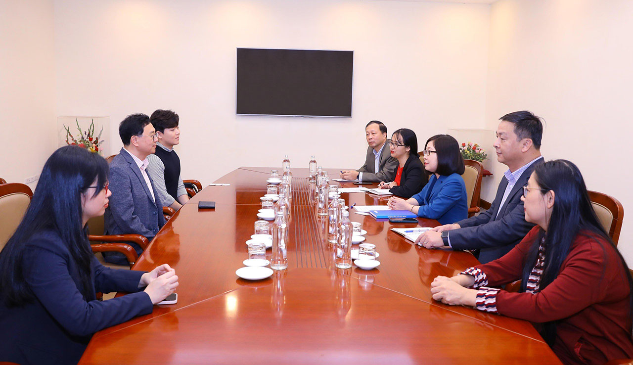 | Phó tổng giám đốc TTXVN Đoàn Thị Tuyết Nhung tiếp đoàn phóng viên hãng thông tấn Hàn Quốc Yonhap, ngày 15/11 |