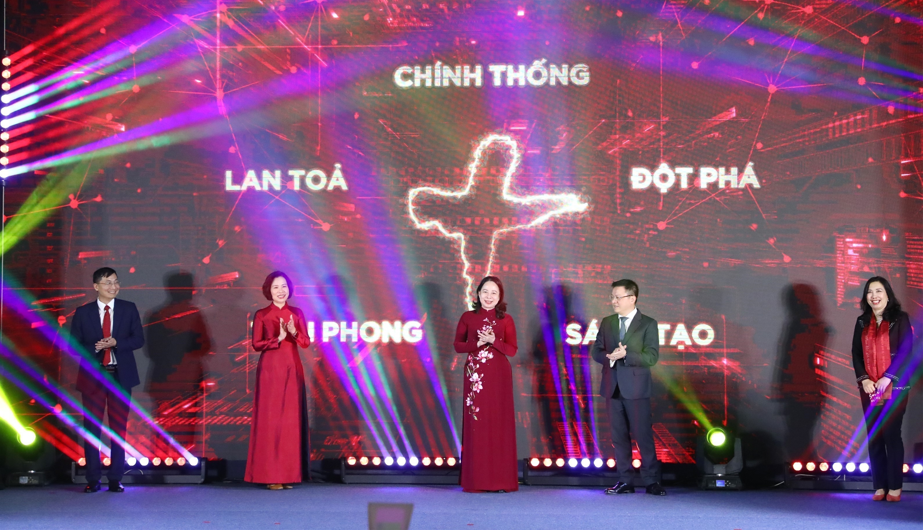 | Phó Chủ tịch nước Võ Thị Ánh Xuân; Tổng biên tập báo Nhân Dân Lê Quốc Minh; Tổng Giám đốc TTXVN Vũ Việt Trang; Tổng biên tập báo điện tử VietnamPlus Trần Tiến Duẩn và các đại biểu thực hiện nghi thức ra mắt giao diện mới và các sản phẩm mới của báo điện tử VietnamPlus tại lễ kỷ niệm 15 năm ngày thành lập, ngày 15/11 |