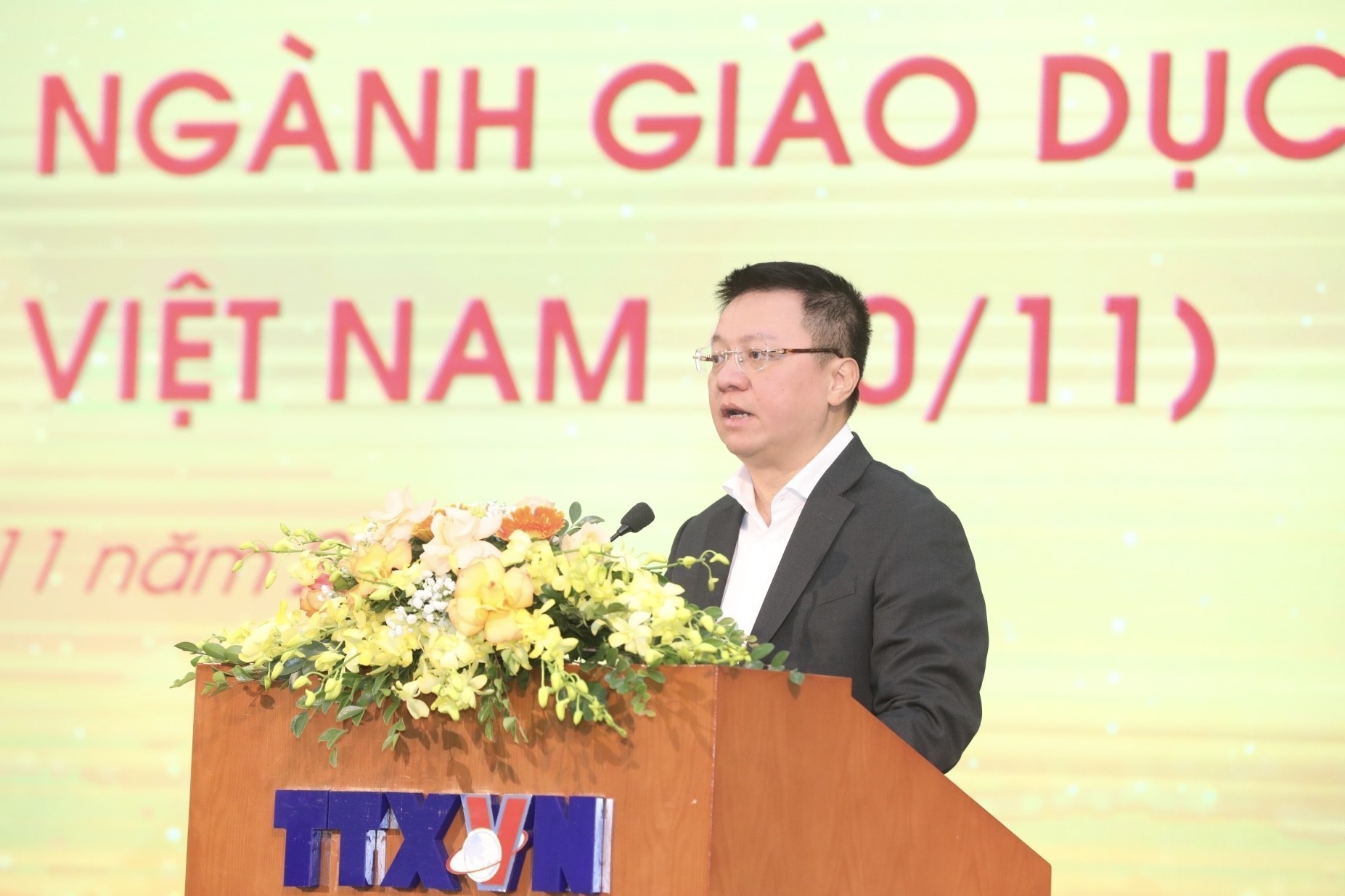| Tổng giám đốc TTXVN Vũ Việt Trang phát biểu tại Chương trình gặp mặt, tri ân cán bộ ngành Giáo dục nhân ngày Nhà giáo Việt Nam (20/11), ngày 17/11 |
