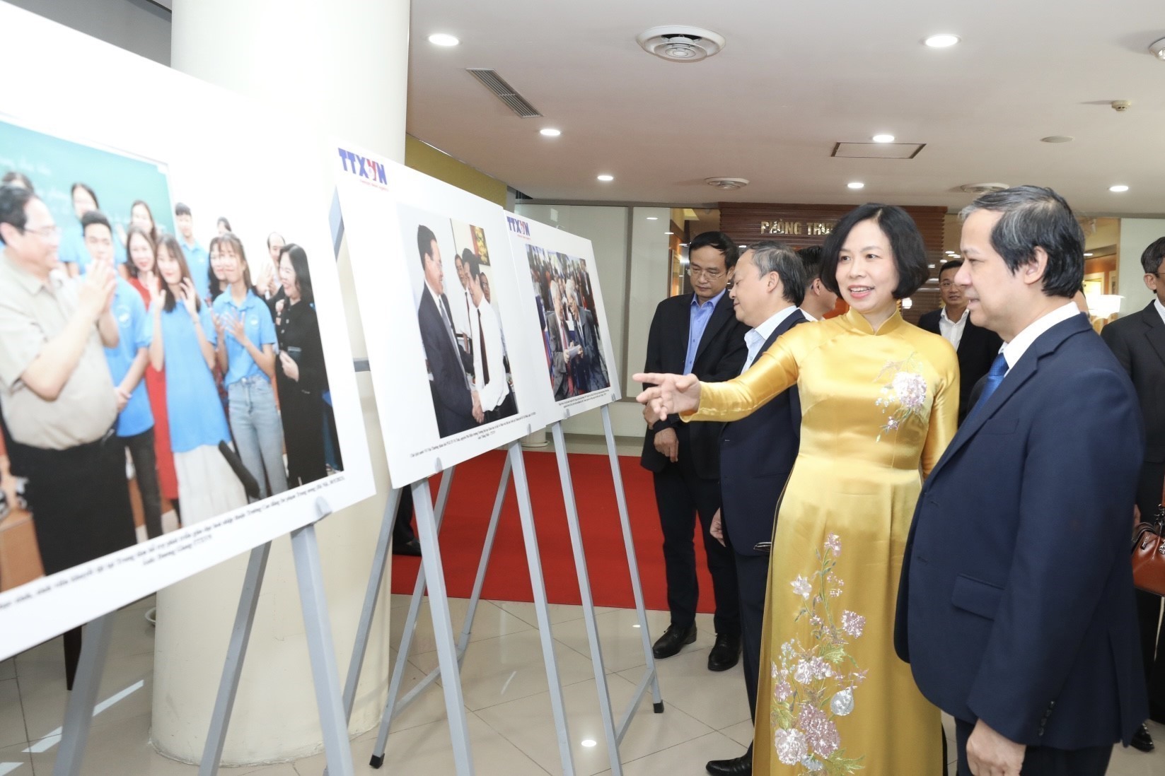 | Tổng giám đốc TTXVN Vũ Việt Trang giới thiệu với Bộ trưởng Bộ Giáo dục và Đào tạo Nguyễn Kim Sơn những hình ảnh tiêu biểu của ngành giáo dục do phóng viên TTXVN thực hiện tại Chương trình gặp mặt, tri ân cán bộ ngành Giáo dục nhân ngày Nhà giáo Việt Nam (20/11), ngày 17/11 |