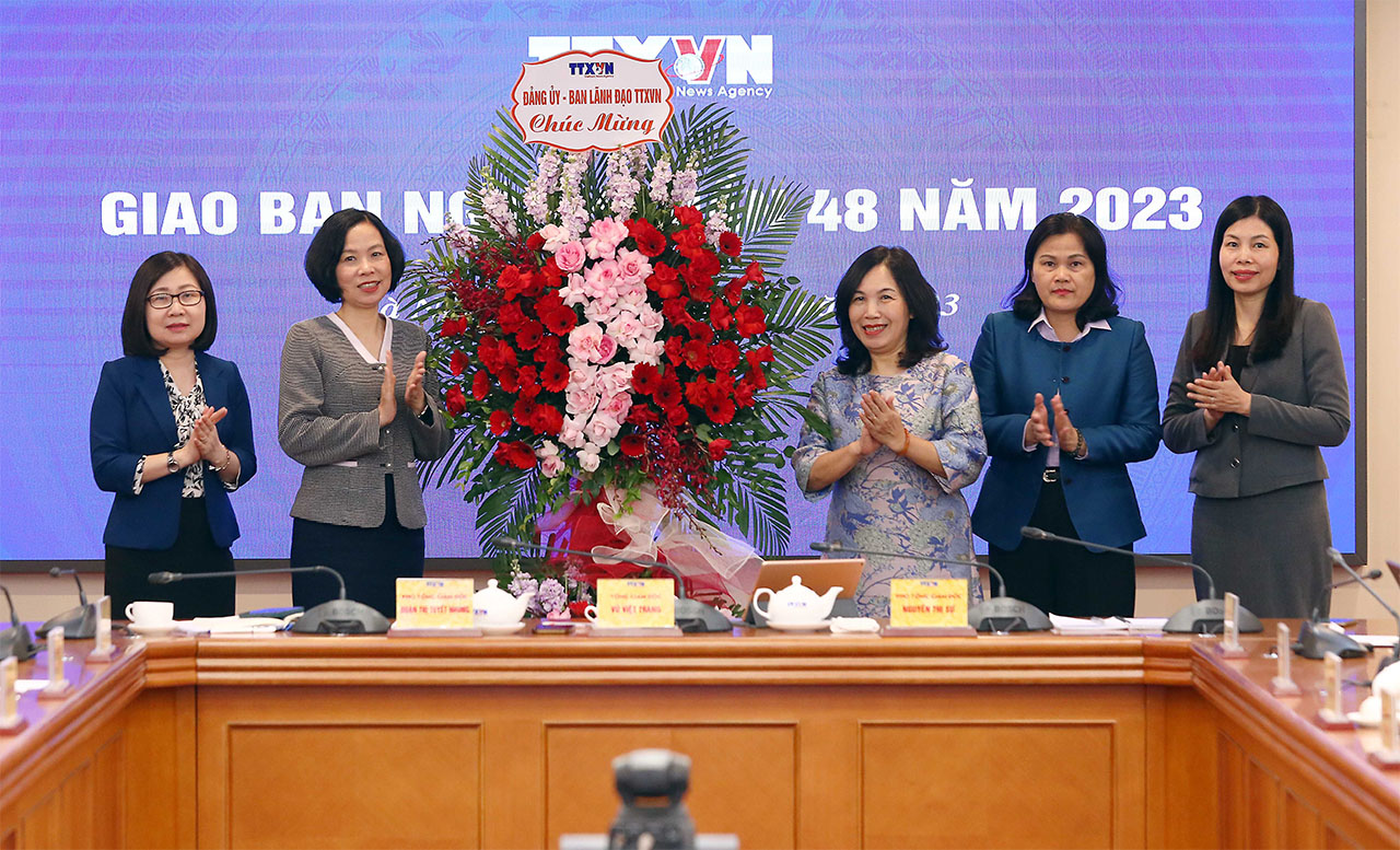 Sự kiện và kỷ niệmTin trong ngành Chúc mừng ngày Nhà giáo Việt Nam 20/11 Thứ hai, 20/11/2023 16:59 Sáng 20/11, tại buổi giao ban toàn ngành, Đảng ủy và Ban lãnh đạo Thông tấn xã Việt Nam đã tặng hoa chúc mừng tập thể cán bộ, phóng viên Trung tâm Bồi dưỡng nghiệp vụ Thông tấn, nhân ngày Nhà giáo Việt Nam 20/11. Đảng ủy, Ban lãnh đạo Thông tấn xã Việt Nam chúc mừng tập thể cán bộ, phóng viên Trung tâm Bồi dưỡng nghiệp vụ Thông tấn nhân ngày Nhà giáo Việt Nam 20/11 Kể từ khóa phóng viên, biên tập viên đầu tiên Thông tấn xã Việt Nam tổ chức năm 1955 đến nay, trải qua 68 năm, công tác đào tạo bồi dưỡng luôn nhận được sự quan tâm, tạo điều kiện của Đảng ủy, Ban lãnh đạo ngành; sự phối hợp, hỗ trợ tích cực từ các đơn vị; sự nỗ lực vượt lên những khó khăn rất đặc thù của đội ngũ báo cáo viên, giảng viên và học viên, để cùng góp sức tạo dựng nên đội ngũ cán bộ, phóng viên, biên tập viên Thông tấn yêu nghề, thành thạo các kỹ năng làm báo hiện đại, đáp ứng yêu cầu phát triển của ngành, bắt nhịp với xu hướng của báo chí Việt Nam và thế giới./. Nội san Thông tấn