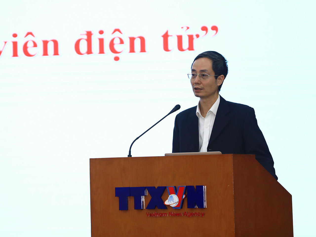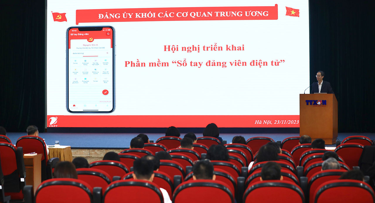 | Ủy viên Ban chấp hành Đảng bộ Khối các cơ quan Trung ương, Giám đốc Trung tâm bồi dưỡng chính trị Đảng ủy Khối Phạm Anh Thiện giới thiệu kế hoạch triển khai, vận hành Sổ tay đảng viên điện tử trong Đảng bộ Khối, ngày 24/11 |