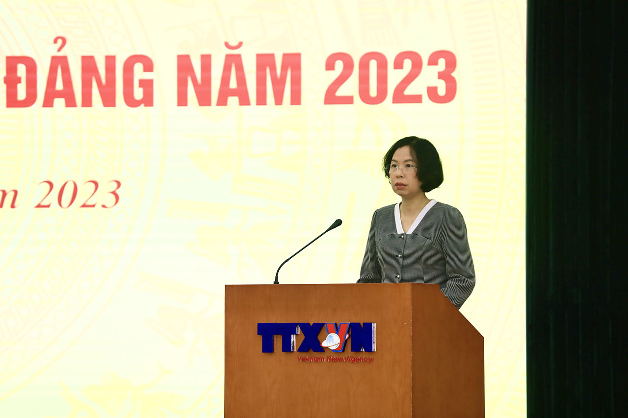 Phát biểu khai mạc hội nghị, Ủy viên Ban chấp hành Đảng bộ Khối các cơ quan Trung ương, Bí thư Đảng ủy, Tổng giám đốc Vũ Việt Trang nhấn mạnh, trong năm 2023, Bộ Chính trị, Ban Bí thư và Đảng ủy Khối đã ban hành một số quy định mới về công tác xây dựng Đảng. Đây là những văn bản rất quan trọng, sẽ được triển khai áp dụng ngay trong thời gian tới, giúp cho đội ngũ cán bộ cấp ủy trong toàn Đảng bộ hiểu sâu, nắm vững, triển khai thực hiện có hiệu quả trong thực tiễn công tác, góp phần tiếp tục nâng cao chất lượng tổ chức cơ sở đảng và chất lượng đội ngũ cán bộ, đảng viên.