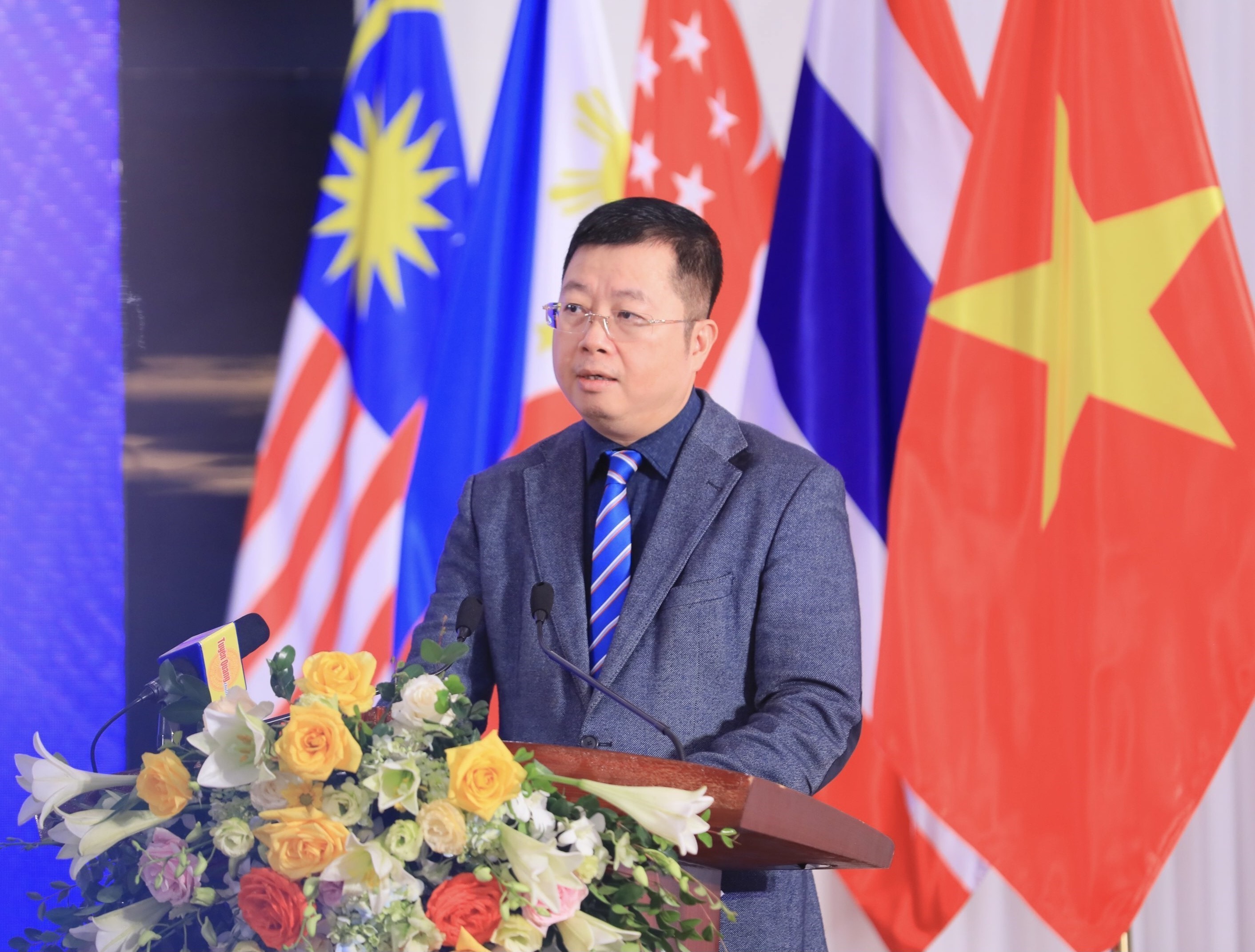 | Tổng biên tập báo điện tử VietnamPlus Trần Tiến Duẩn phát biểu tại hội thảo báo chí quốc tế “Quản trị tòa soạn báo chí số: Lý luận, thực tiễn, kinh nghiệm tại khu vực ASEAN”, ngày 7/12 |
