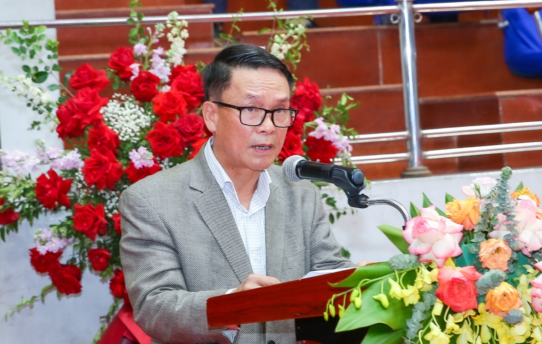 | Phó Chủ tịch Thường trực Hội Nhà báo Việt Nam Nguyễn Đức Lợi, Trưởng ban tổ chức Giải bóng bàn Cúp Hội Nhà báo Việt Nam lần thứ XVI phát biểu tại lễ bế mạc, ngày 15/12 |