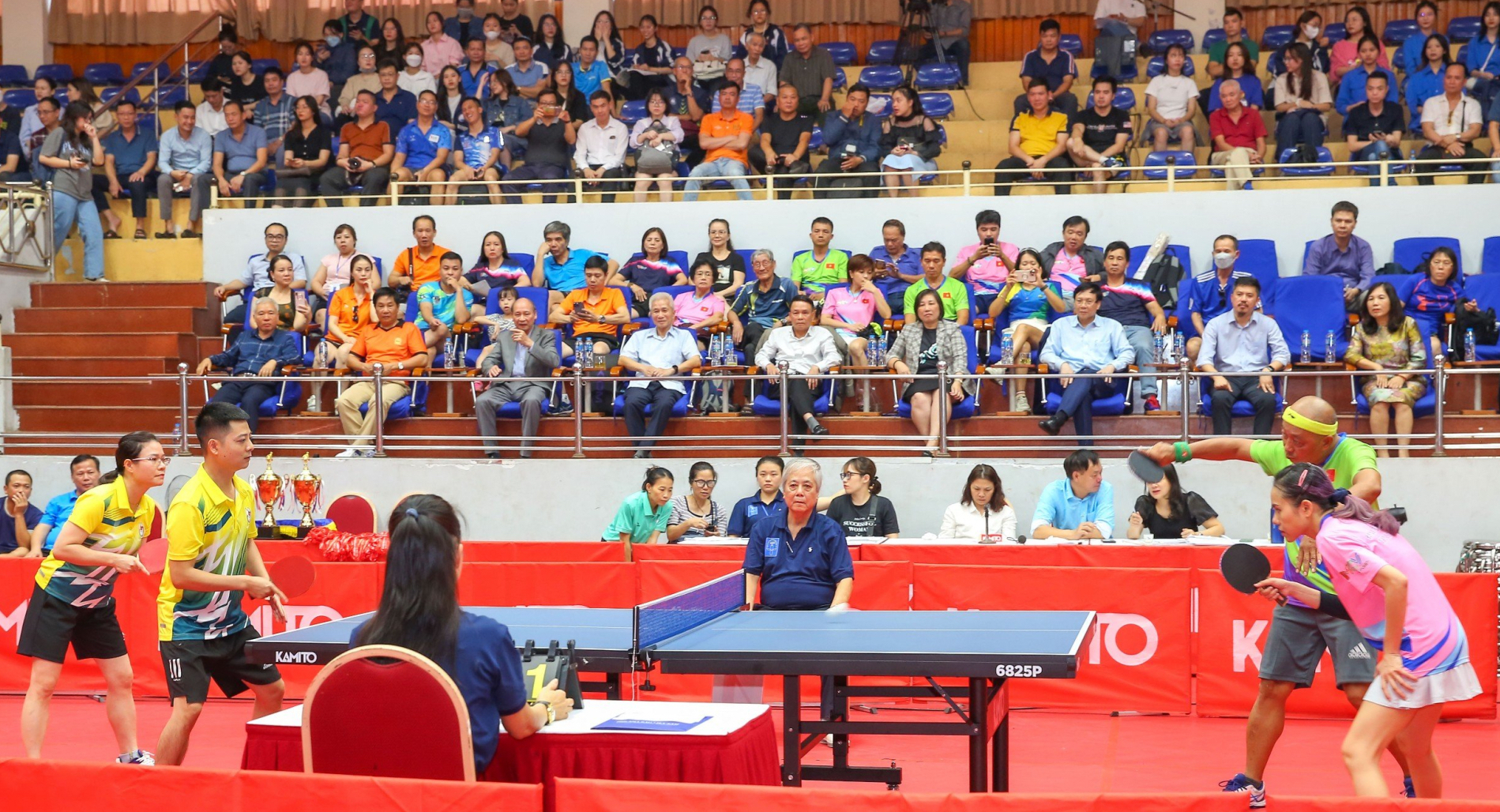 | Chủ tịch Hội Nhà báo Việt Nam Lê Quốc Minh và Phó Chủ tịch Thường trực Hội Nhà báo Việt Nam Nguyễn Đức Lợi trao cờ lưu niệm cho các đội tuyển tham gia thi đấu Giải bóng bàn Cúp Hội Nhà báo Việt Nam lần thứ XVI năm 2023 |