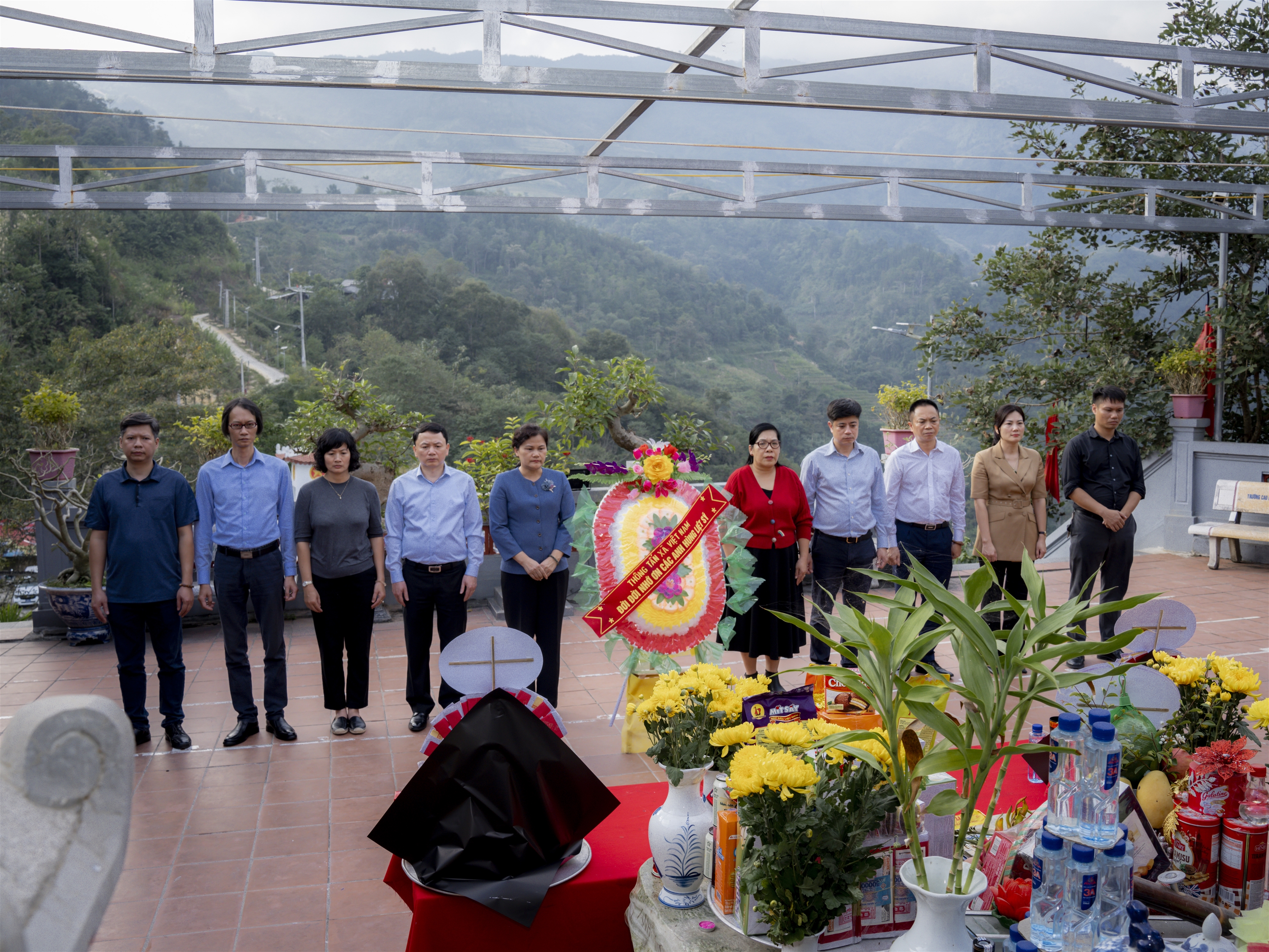 | Phó tổng giám đốc TTXVN Nguyễn Thị Sự cùng đoàn công tác dâng hương tưởng niệm tại Đài hương tưởng niệm đặt tại Điểm cao 468 thuộc thôn Nậm Ngặt, xã Thanh Thủy, huyện Vị Xuyên, tỉnh Hà Giang, ngày 14/12 |