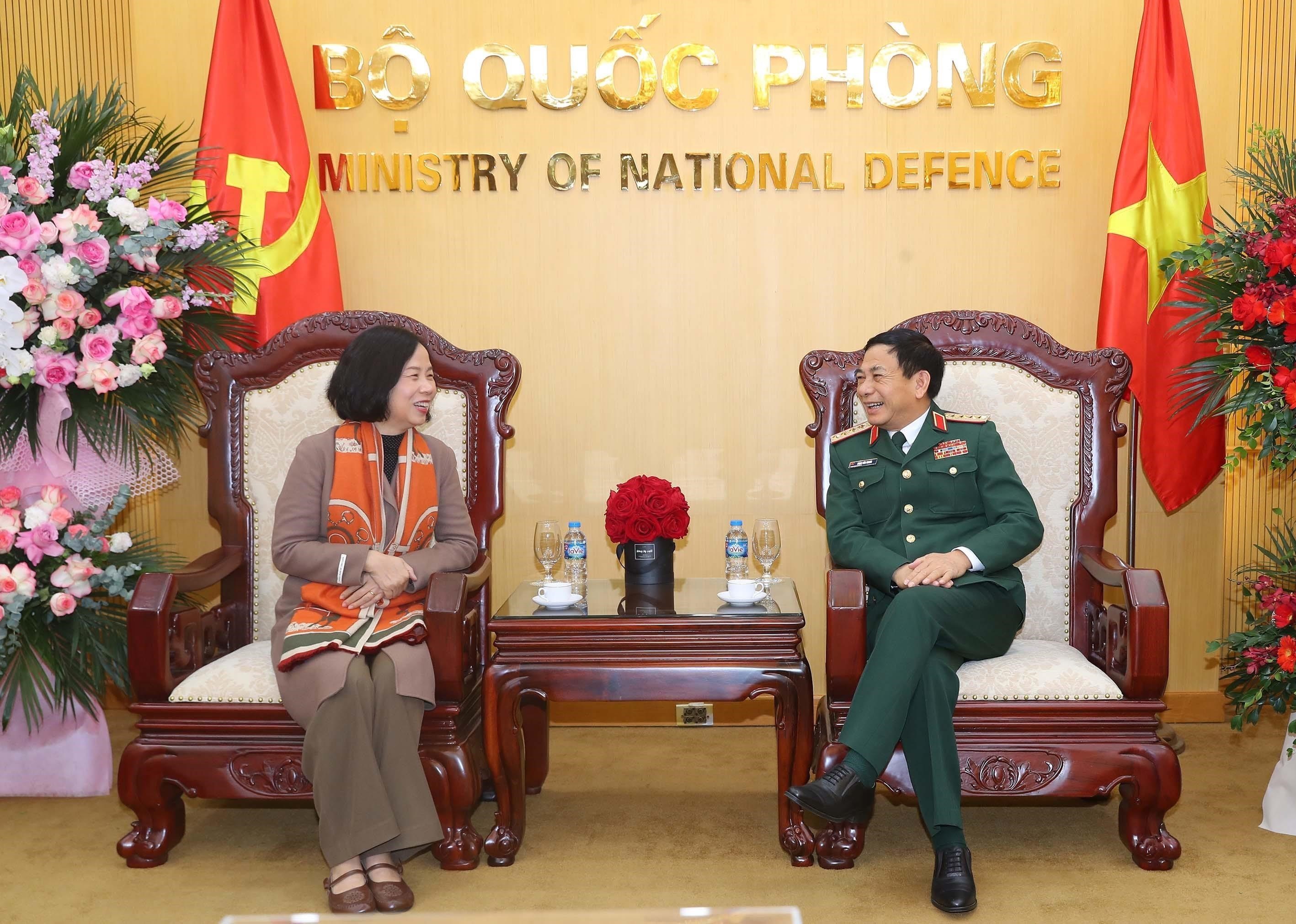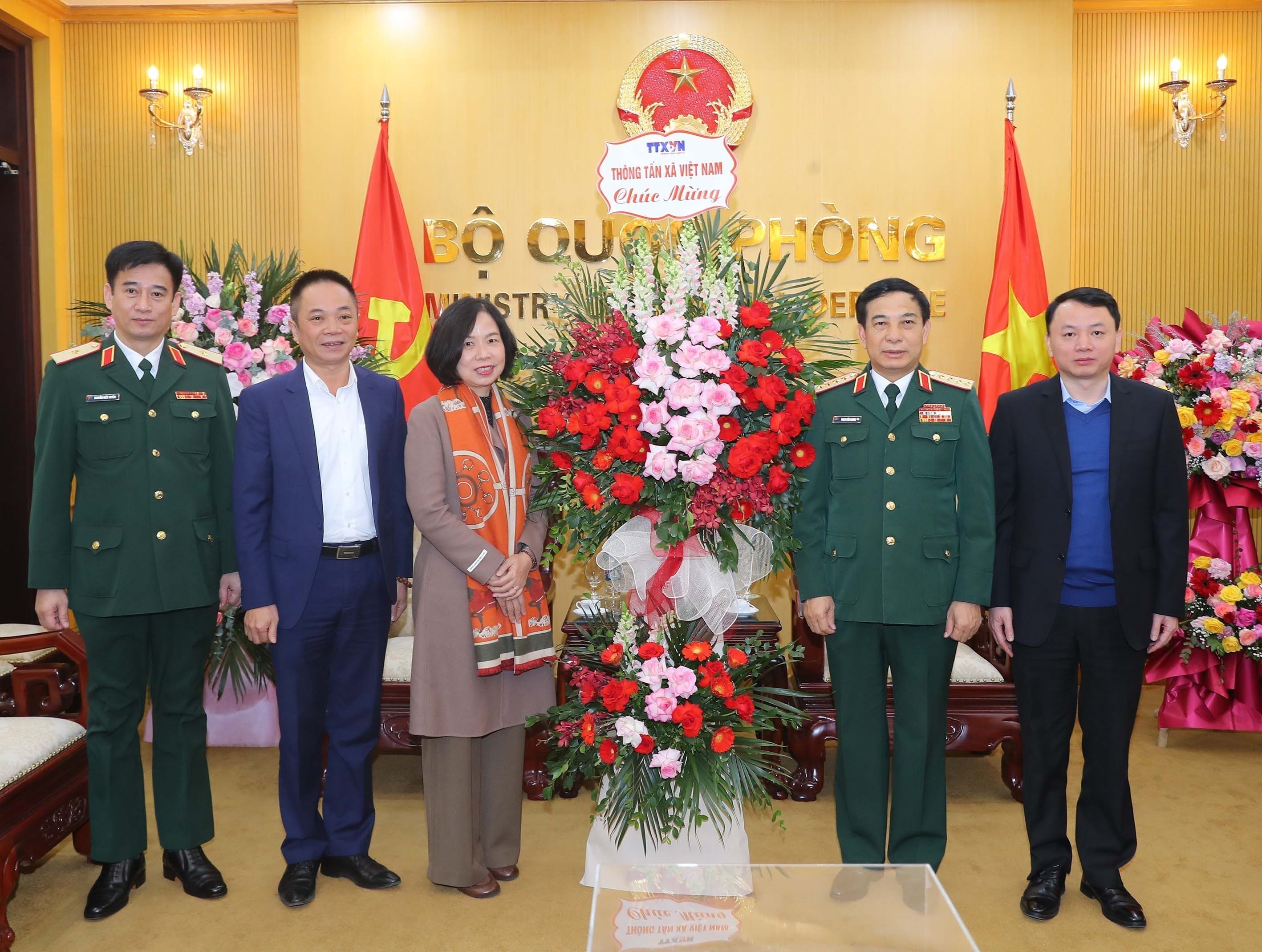 Sự kiện và kỷ niệmTin trong ngành Chúc mừng Bộ Quốc phòng nhân 79 năm thành lập Quân đội nhân dân Việt Nam Thứ sáu, 22/12/2023 15:03 Nhân kỷ niệm 79 năm Ngày thành lập Quân đội nhân dân Việt Nam (22/12/1944-22/12/2023) và 34 năm Ngày hội Quốc phòng toàn dân (22/12/1989-22/12/2023), sáng 22/12, đoàn đại biểu Thông tấn xã Việt Nam (TTXVN) do đồng chí Vũ Việt Trang, Bí thư Đảng ủy, Tổng giám đốc làm Trưởng đoàn đã đến chúc mừng Đại tướng Phan Văn Giang, Ủy viên Bộ Chính trị, Phó Bí thư Quân ủy Trung ương, Bộ trưởng Bộ Quốc phòng cùng các đồng chí lãnh đạo Quân ủy Trung ương - Bộ Quốc phòng. Tổng giám đốc TTXVN Vũ Việt Trang chúc mừng Đại tướng Phan Văn Giang, Bộ trưởng Bộ Quốc phòng, ngày 22/12 Tổng giám đốc TTXVN Vũ Việt Trang chúc mừng Đại tướng Phan Văn Giang, Bộ trưởng Bộ Quốc phòng, ngày 22/12 TTXVN/Nội san Thông tấn