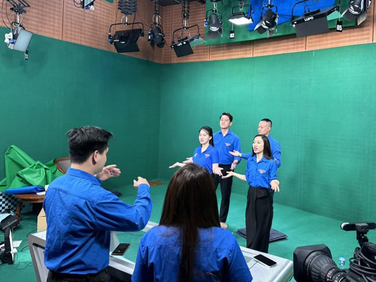 | Hậu trường sản xuất Rap News “Thanh niên hành động” tại trường quay ảo của Trung tâm Truyền hình Thông tấn, tháng 5/2023 |