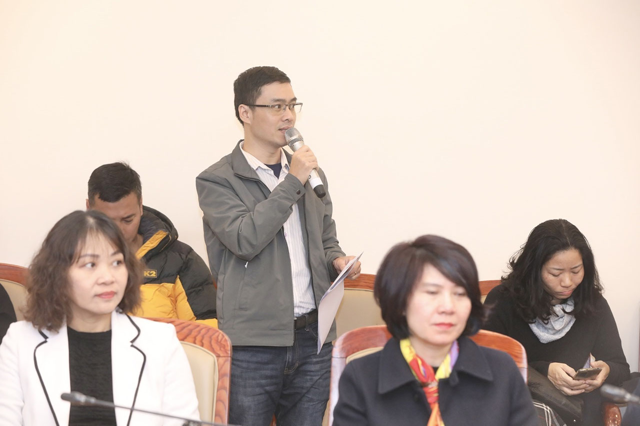 | Phóng viên các cơ quan báo chí đặt câu hỏi với Hội đồng Giải thưởng ảnh và video clip “Công nghệ từ trái tim - Technology with heart” tại Lễ phát động, ngày 25/1 |