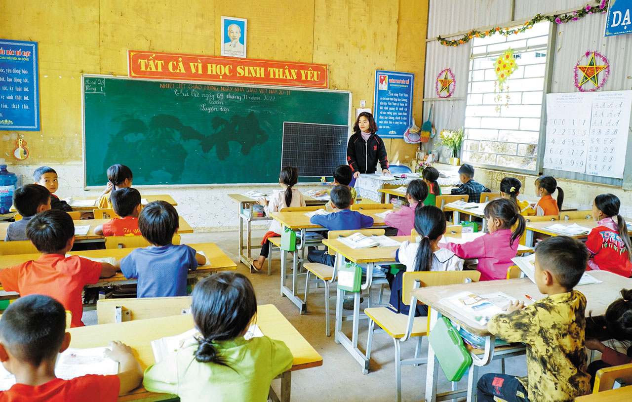 | Cô và trò trường PTDT bán trú Tiểu học và THCS Vàng Đán, huyện Nậm Pồ, tỉnh Điện Biên, tháng 11/2022 |