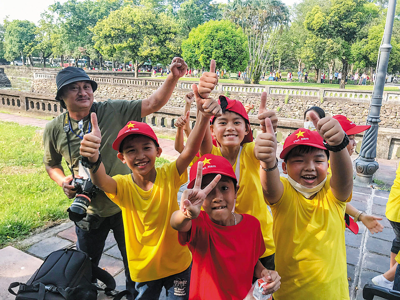 | Phóng viên Báo ảnh Việt Nam Đặng Thanh Hòa tác nghiệp tại Cố đô Huế, tháng 5/2023 |