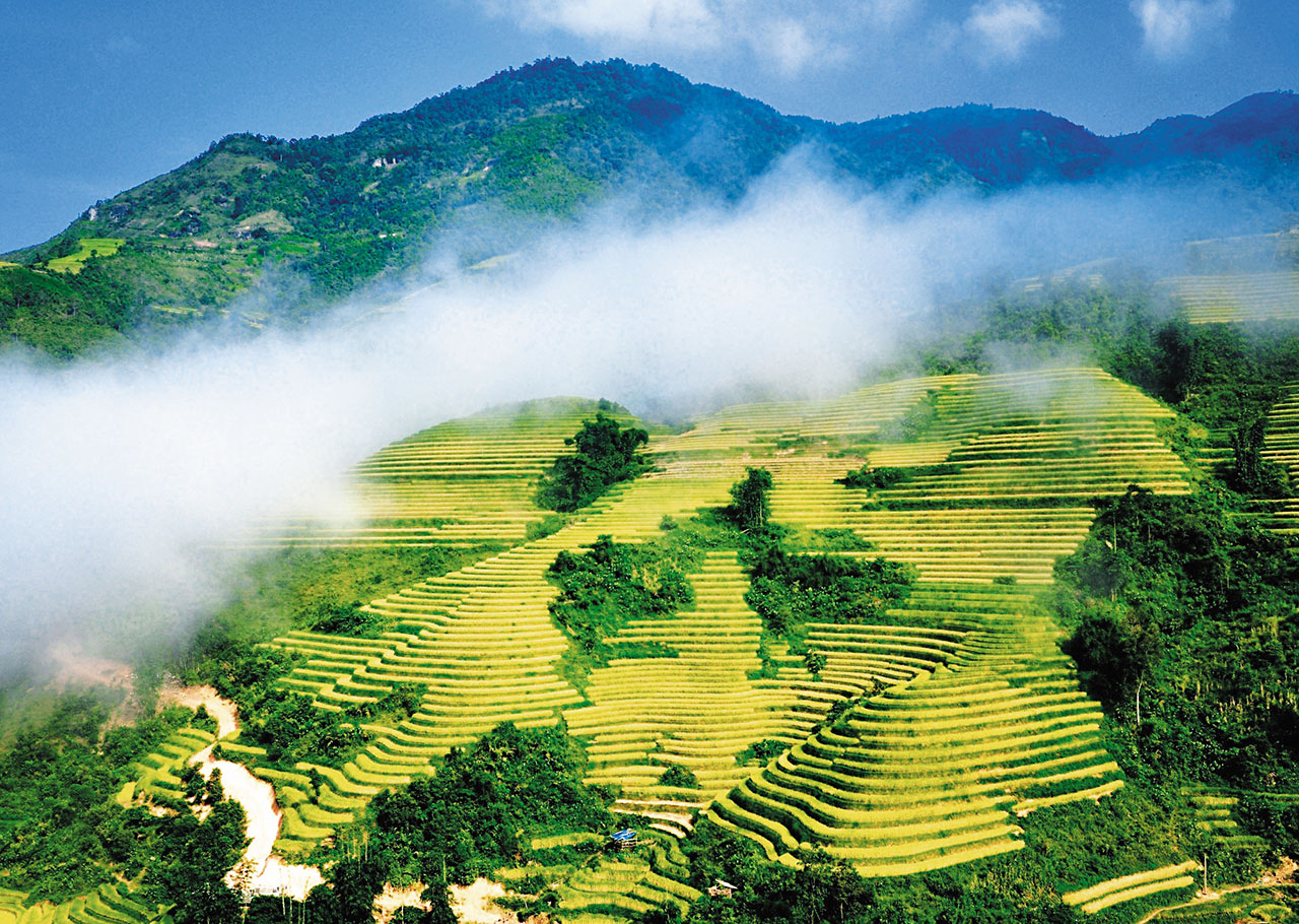 Những thửa ruộng bậc thang hùng vĩ, mờ ảo trong màn mây của mùa Thu Sa Pa