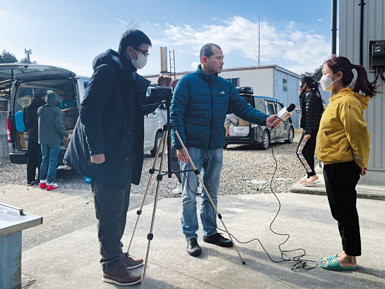 | Phóng viên CQTT TTXVN tại Tokyo (Nhật Bản) phỏng vấn lao động Việt Nam bị ảnh hưởng sau trận động đất ở thành phố Nanao, tỉnh Ishikawa, tháng 1/2024 |