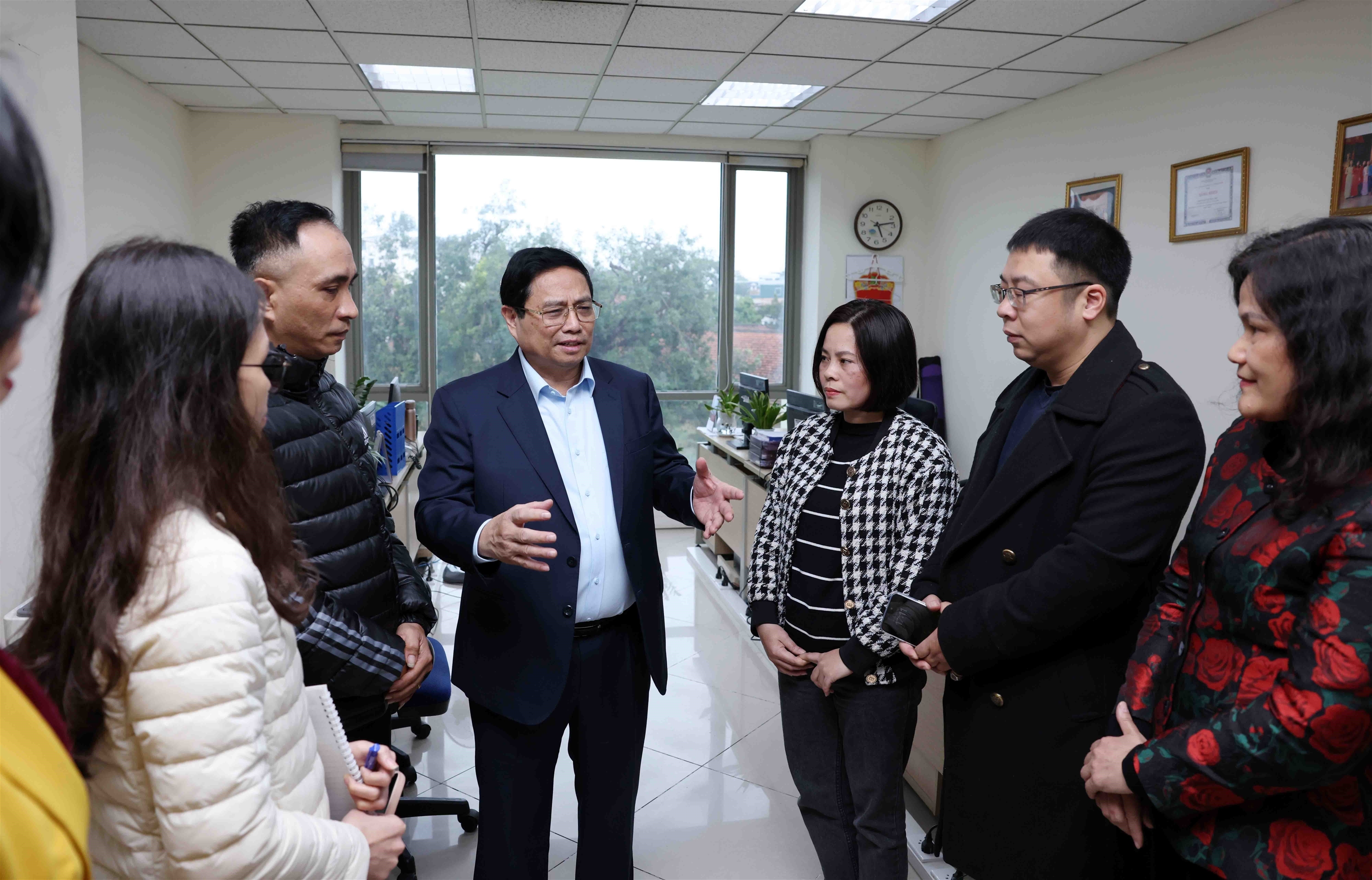 Thăm Phòng điều độ thông tin, Trung tâm Kỹ thuật Thông tấn, Thủ tướng vui mừng khi biết hệ thống dữ liệu của TTXVN hiện kết nối với khoảng 40 hãng thông tấn lớn trên thế giới; đồng thời lưu ý các kíp trực đảm bảo kết nối thông tin thông suốt giữa TTXVN với các hãng thông tấn quốc tế; kết nối với các phóng viên trong và ngoài nước để phản ánh không khí đón năm mới của cả nước cũng như việc chăm lo cho nhân dân đón Tết.