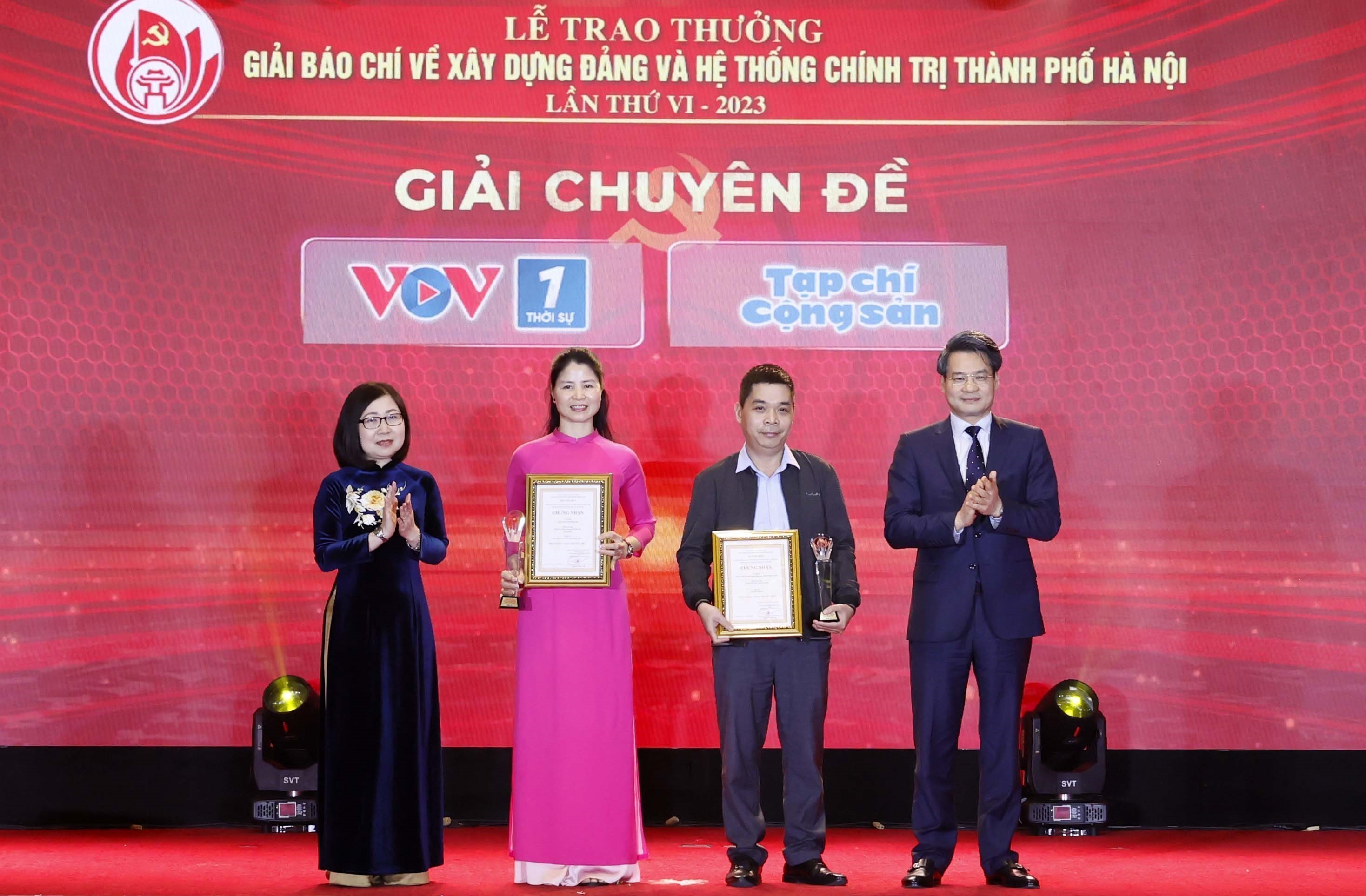 | Ban tổ chức trao giải C Giải báo chí về xây dựng Đảng và hệ thống chính trị TP. Hà Nội lần thứ VI - 2023 cho các tác giả, ngày 6/3 |