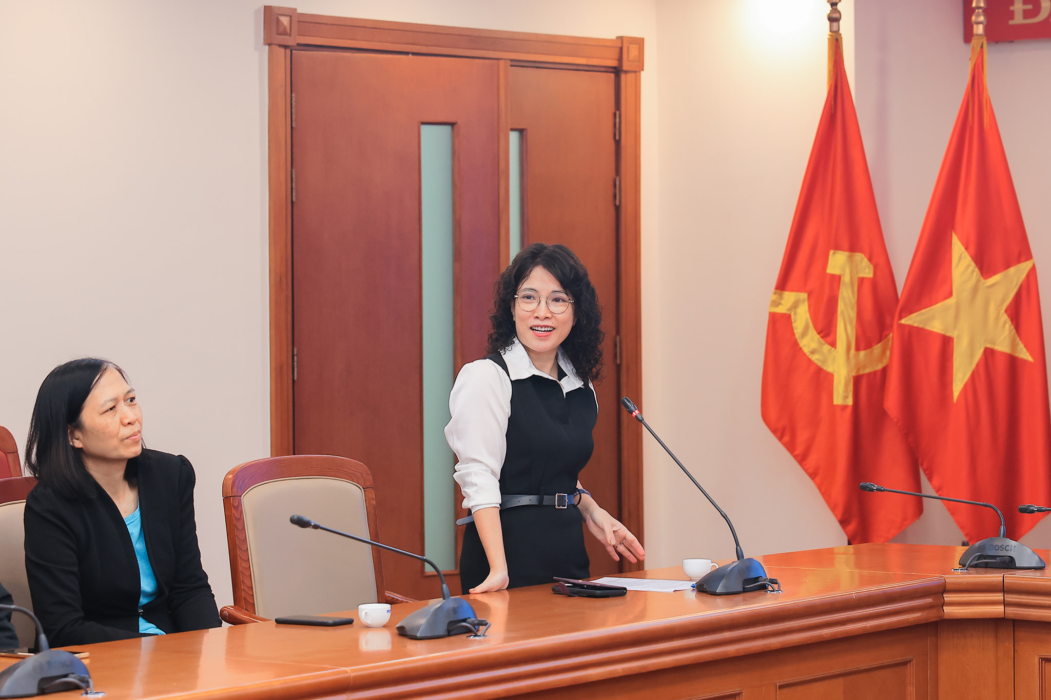 | Trưởng ban biên tập tin Kinh tế Lê Thị Thanh Huyền tế phát biểu tại buổi sinh hoạt chuyên đề “Kinh nghiệm thực chiến trên thị trường chứng khoán”, ngày 14/3 |