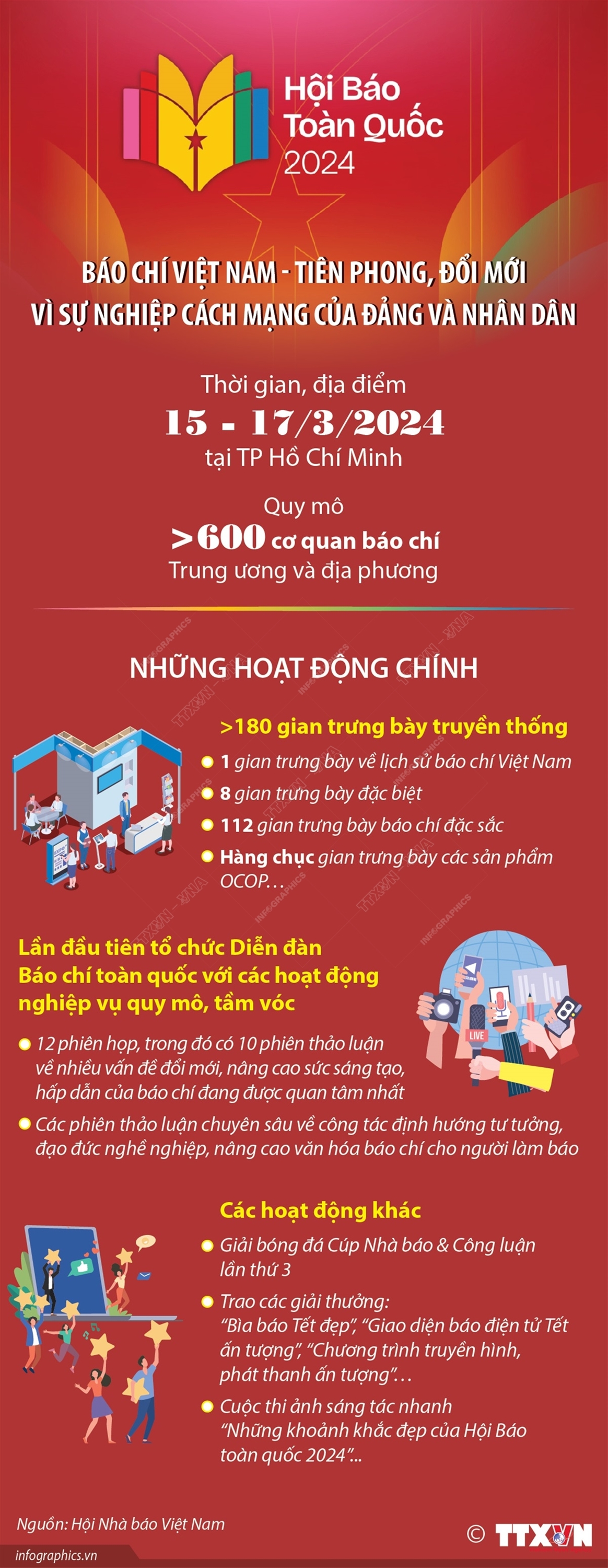 Với chủ đề “Báo chí Việt Nam - Tiên phong, đổi mới vì sự nghiệp cách mạng của Đảng và nhân dân”, Hội Báo toàn quốc năm 2024 có quy mô lớn nhất từ trước đến nay, quy tụ hơn 600 cơ quan báo chí Trung ương và địa phương, trong đó, gần 300 cơ quan báo chí và các cấp Hội Nhà báo Việt Nam tham gia trưng bày báo chí, giới thiệu sản phẩm tại tuyến đường Lê Lợi (Quận 1).