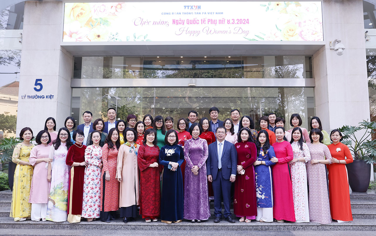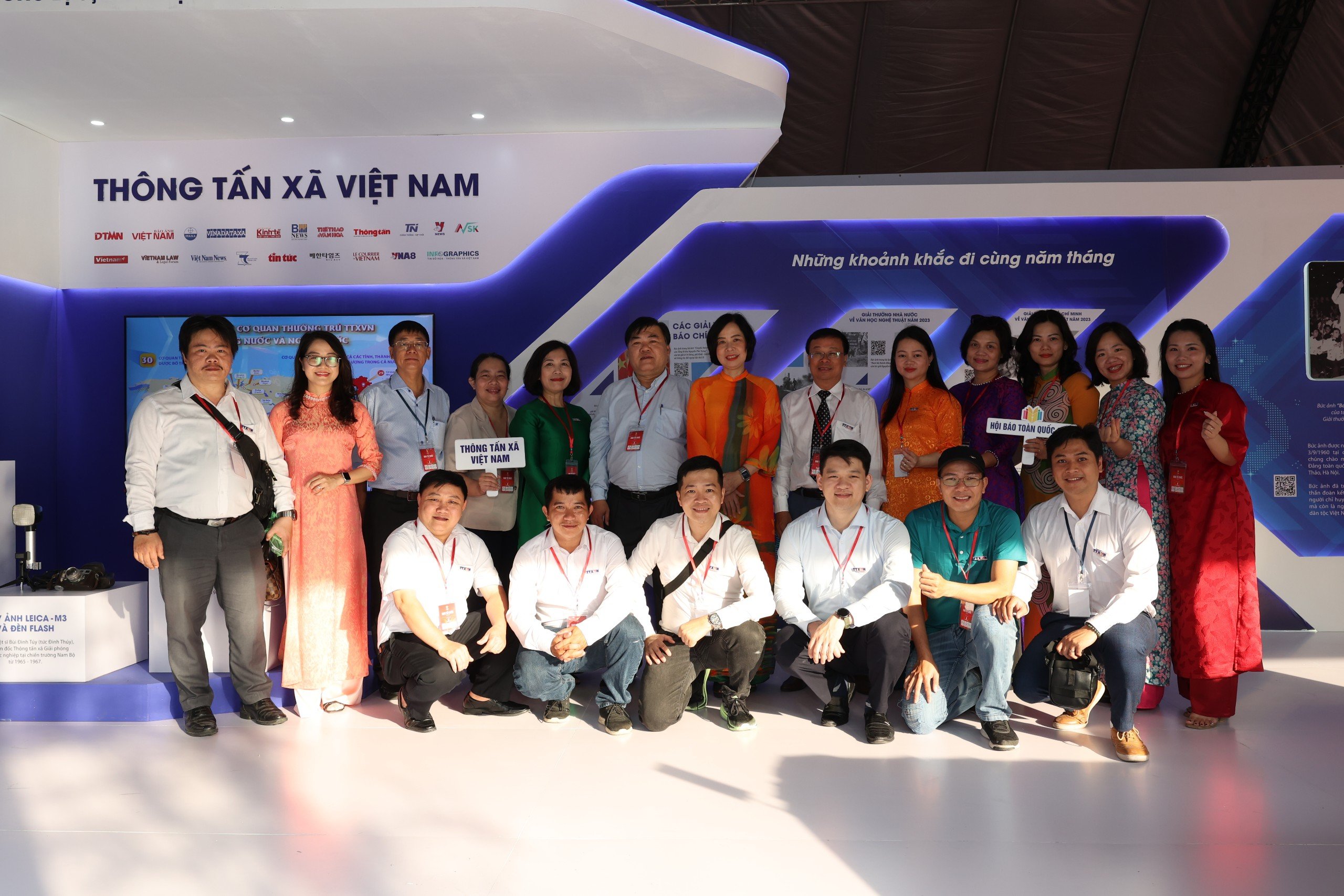 Bí thư Đảng ủy, Tổng giám đốc TTXVN Vũ Việt Trang cùng cán bộ, phóng viên, kỹ thuật viên TTXVN tại Hội Báo toàn quốc 2024, ngày 15/3