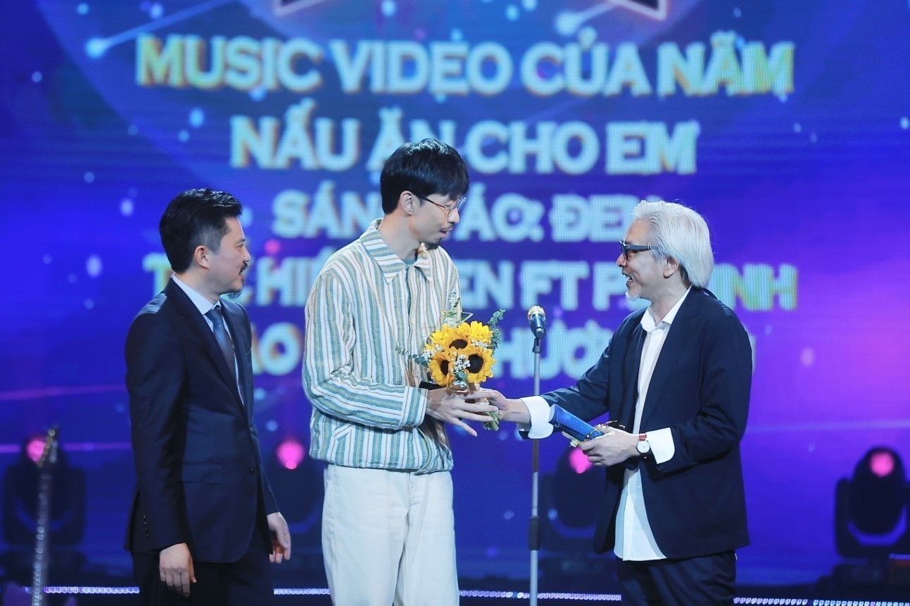 | Đại diện Ban tổ chức trao giải Âm nhạc, hạng mục “Music Video của năm” cho video "Nấu ăn cho em" của nghệ sĩ Đen, tại lễ trao Giải Cống hiến, ngày 27/3 |
