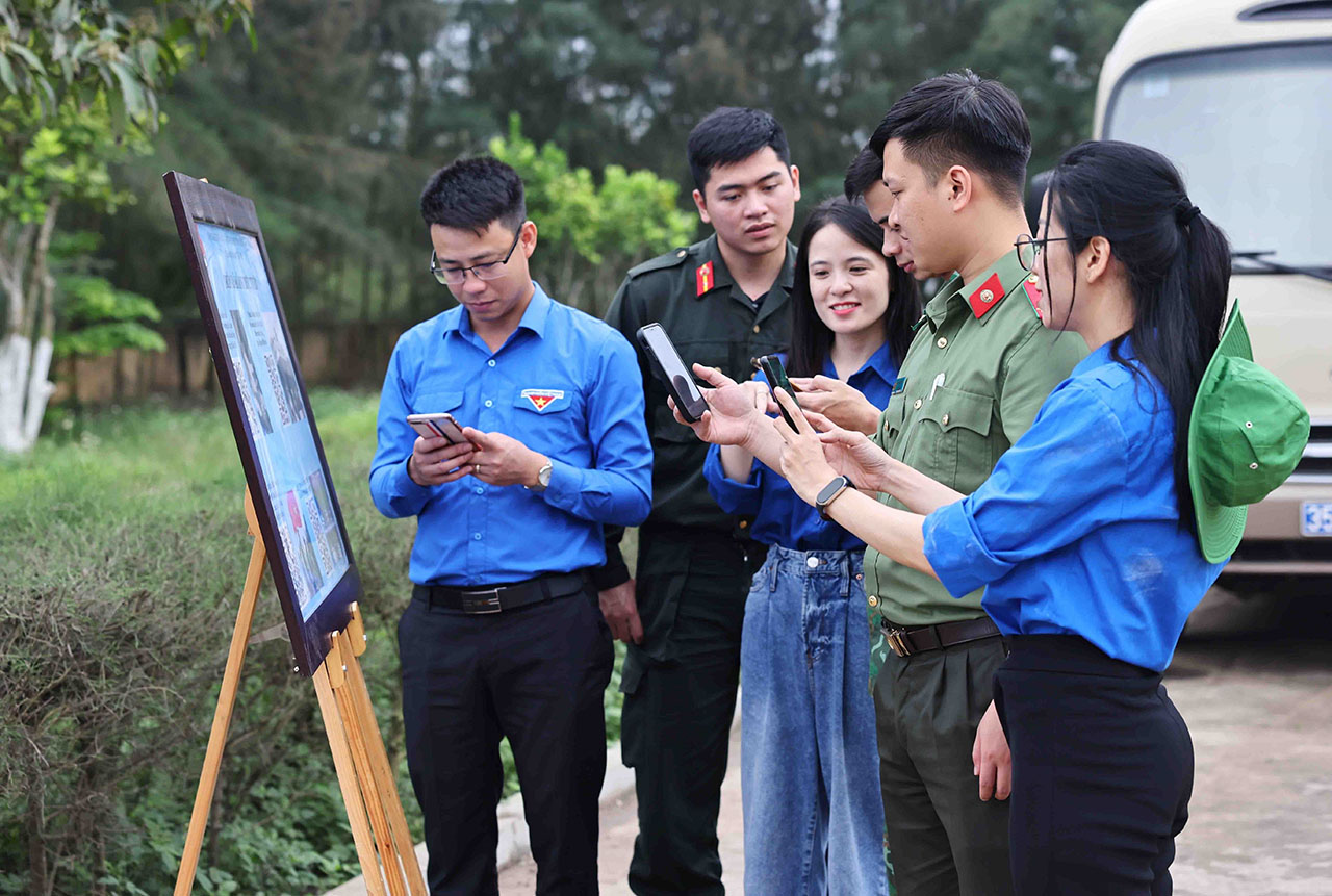 | Đoàn viên, thanh niên TTXVN,Tỉnh đoàn Ninh Bình, Ban thanh niên Công an tỉnh Ninh Bình quét mã QR để xem triển lãm ảnh trực tuyến do Chi đoàn Ban biên tập Ảnh thực hiện, ngày 10/4 |
