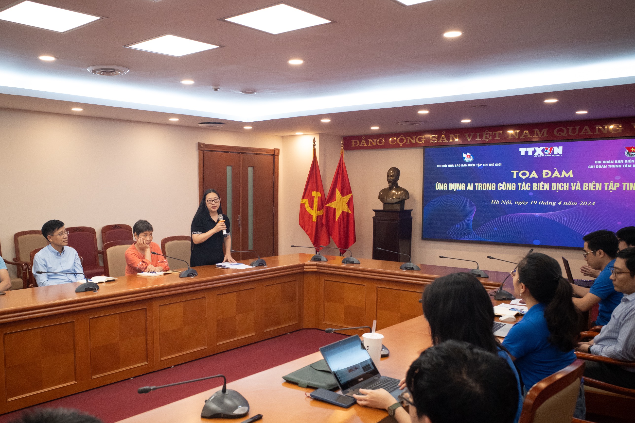Ngày 19/4, Chi hội Nhà báo và Chi đoàn Ban biên tập tin Thế giới phối hợp với Chi đoàn Trung tâm Kỹ thuật Thông tấn tổ chức tọa đàm “Ứng dụng AI trong công tác biên dịch và biên tập tin quốc tế”.