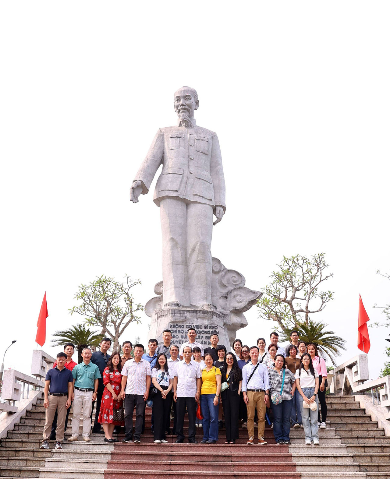 | Các đảng viên Đảng bộ Ban biên tập Ảnh bên Tượng đài Bác Hồ trên Công trình thủy điện Hòa Bình, ngày 24/4 |