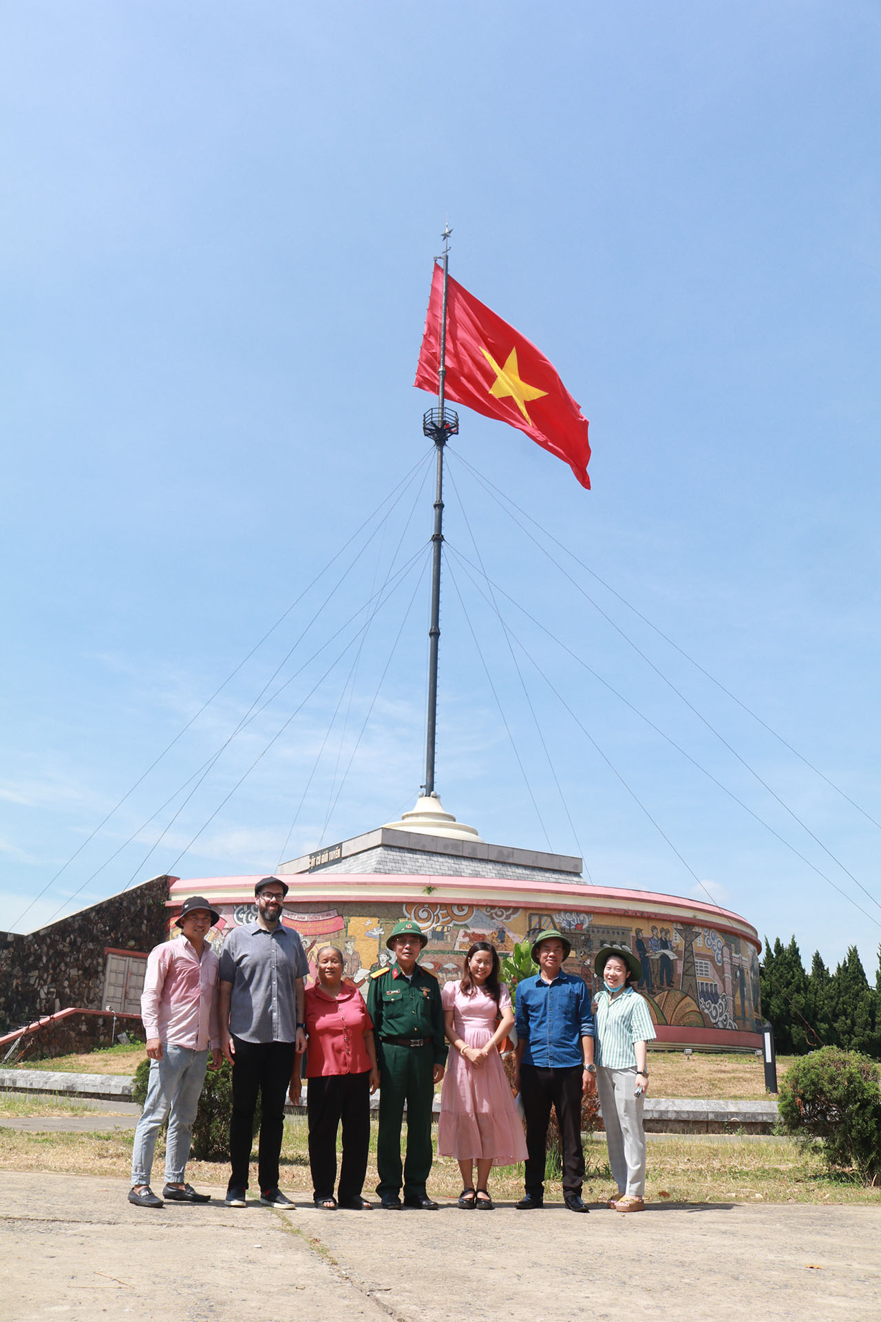 | Ê kíp sản xuất cùng các nhân vật bên cột cờ Vĩ tuyến 17 tại tỉnh Quảng Trị, tháng 6/2023 |