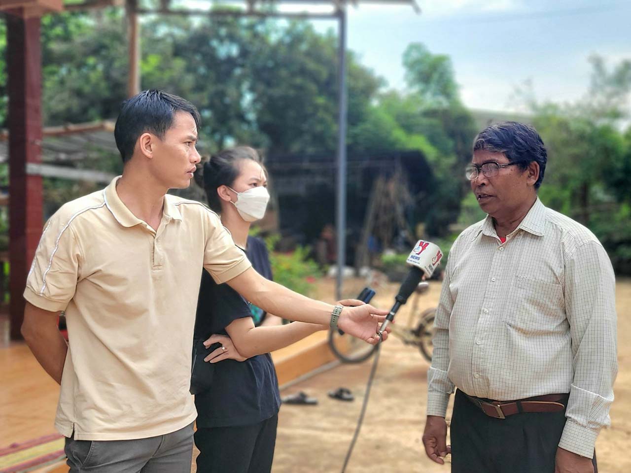 | Phóng viên CQTT Gia Lai Trần Quang Thái phỏng vấn mục sư Ae Smit (Y Djan EBan), người có uy tín tại xã Ea Ktur, huyện Cư Kuin, tỉnh Đắk Lắk, tháng 6/2023 |