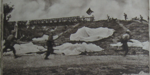 Hình ảnh Việt Nam số 2, tháng 12/1954. Ảnh cho thấy khu vực cầu Mường Thanh còn ngổn ngang dù trắng của quân đội Pháp phủ dưới chân cầu. Bộ đội ta đang cấp tập từ chân cầu lên mặt đường, vượt cầu để đánh vào trung tâm.
