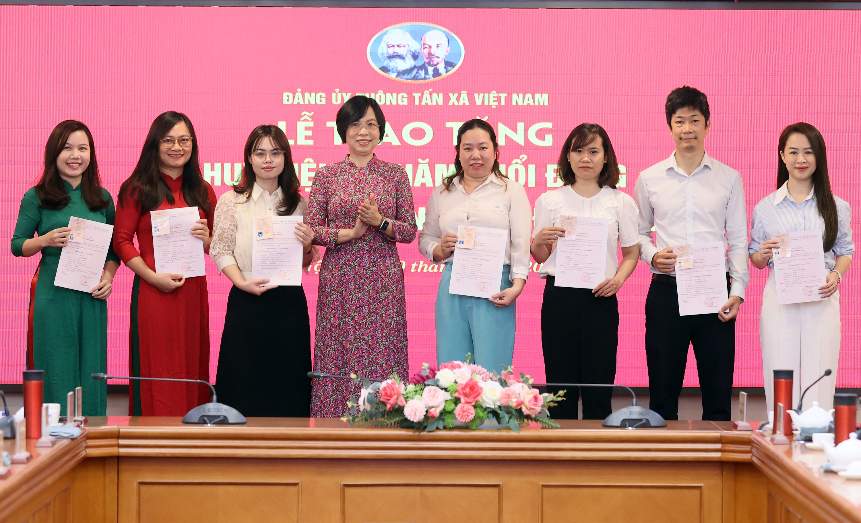 Tổng giám đốc Vũ Việt Trang cũng chúc mừng 14 đồng chí đảng viên được trao Thẻ đảng viên dịp này, kết quả của quá trình nỗ lực, phấn đấu, trưởng thành của các đồng chí để được chính thức đứng trong hàng ngũ của Đảng, trở thành đảng viên Đảng Cộng sản Việt Nam.