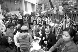 Cái "chợ" của chị Hằng thực chất là hơn chục "sạp" hàng trong khoảnh sân nhỏ chừng hai chục mét vuông đằng sau trụ sở cơ quan ở số 11 Trần Hưng Đạo. Chị bảo, chị mở "chợ", trước là để anh chị em Thông tấn có dịp giao lưu cuối năm- "như cái chợ phiên ở vùng cao", sau nữa là để mọi người trao đổi những món hàng (cả đã qua sử dụng lẫn đồ mới), với giá cả phải chăng. Và mục đích sau cùng là để quyên góp tiền làm từ thiện.