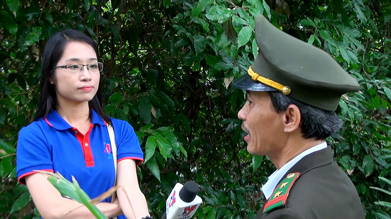 | Phóng viên Minh Thanh phỏng vấn cán bộ kiểm lâm Đà Nẵng về bảo tồn voọc chà vá chân nâu, năm 2017 |