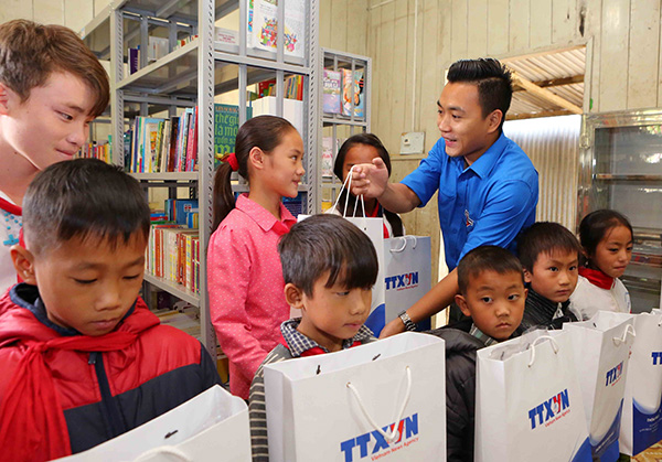 Hơn 1.000 cuốn sách, báo, truyện và dụng cụ phòng đọc, dụng cụ luyện tập như cầu lông, bóng đá, cờ vua… được trao tặng phục vụ các em học sinh trong học tập và thư giãn ngoài giờ học.