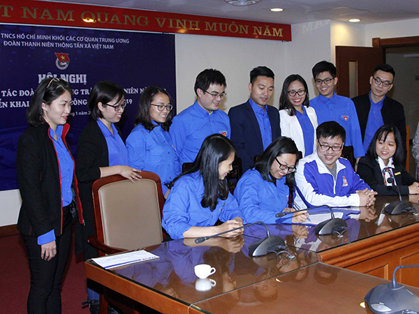 Ngày 17/1, tại hội nghị trực tuyến triển khai công tác đoàn và phong trào thanh niên năm 2019, Đoàn thanh niên cơ quan đã tổ chức ký giao ước thi đua giữa 38 chi đoàn và 3 đoàn cơ sở thực hiện Nghị quyết 02-NQ/ĐU, ngày 4/12/2018, của Đảng ủy TTXVN về đổi mới và tăng cường sự lãnh đạo của Đảng đối với công tác thanh niên.