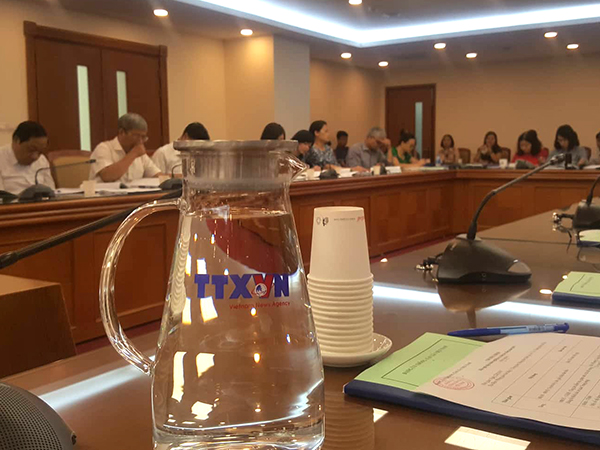 | Bình nước và cốc giấy thay thế chai nước nhựa dùng một lần tại hội nghị tập huấn công tác Đảng TTXVN, ngày 25/8/2019 |