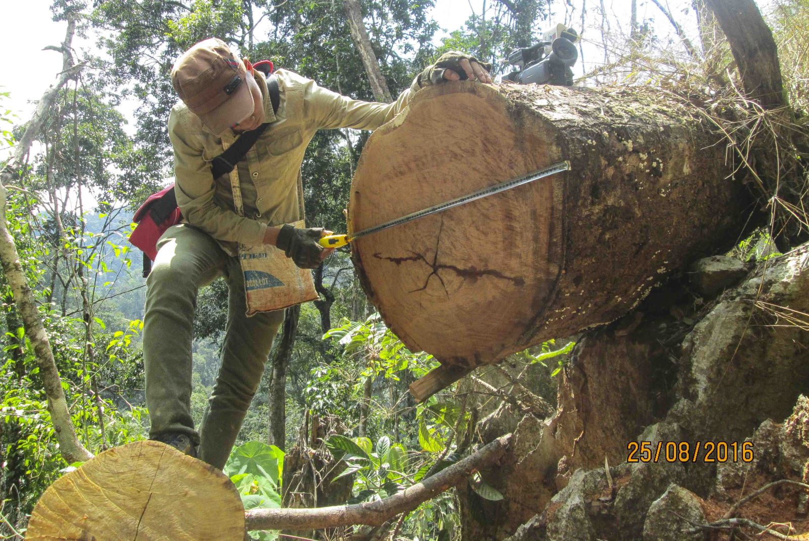 Từ sáng sớm, chúng tôi lại vượt quãng đường dài để trở lại rừng. Tất cả những vị trí có cây gỗ nghiến bị đốn hạ, khai thác đều được chúng tôi đo tọa độ GPS. Đến khoảng 12 giờ trưa, đồng nghiệp của tôi bị dính lông sâu ở cổ, sau đó lan ra mẩn ngứa khắp toàn thân. Chúng tôi phải quay lại lán của người dân để xin muối xát vào trị ngứa. Ngay sau đó, gần 20 cán bộ kiểm lâm và xã Mường Đun ập tới khiến chúng tôi phải tạm lánh bên trong lán để tránh bị phát hiện.