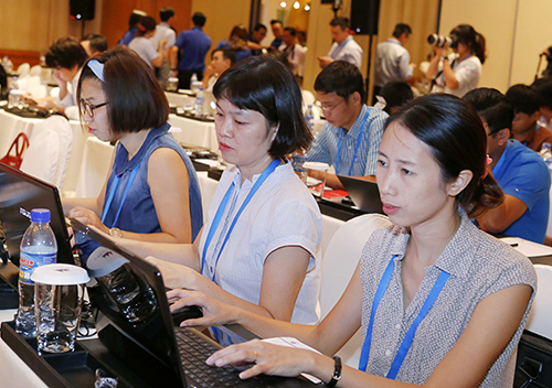 | Phóng viên Ban biên tập tin Đối ngoại tại phiên họp báo kết thúc SOM3, ngày 30/8/2017 tại TP. Hồ Chí Minh |