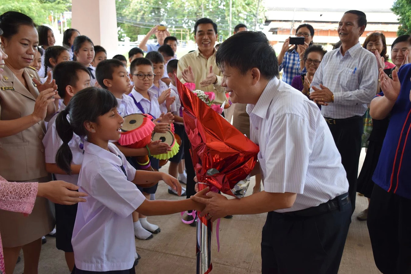 Phó Tổng giám đốc Đinh Đăng Quang nhận hoa chúc mừng của học sinh trường Anuban Nakhon Phanom