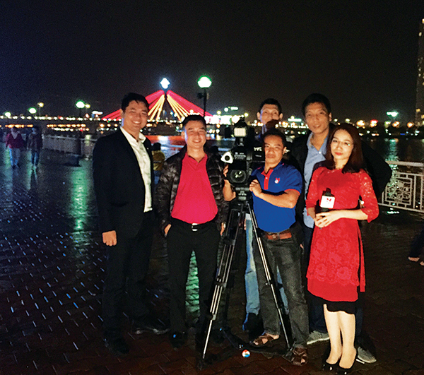 Gần 21 giờ, ngày 31/12/2017, bên bờ Tây sông Hàn, khi cơn mưa rào vừa ngớt, ê kíp phóng viên Chi nhánh Trung tâm truyền hình Thông tấn tại Đà Nẵng (Chi nhánh Vnews Đà Nẵng) khẩn trương ổn định vị trí, sẵn sàng đưa tin trực tiếp màn bắn pháo hoa vào đúng 21 giờ, chào mừng năm mới 2018.