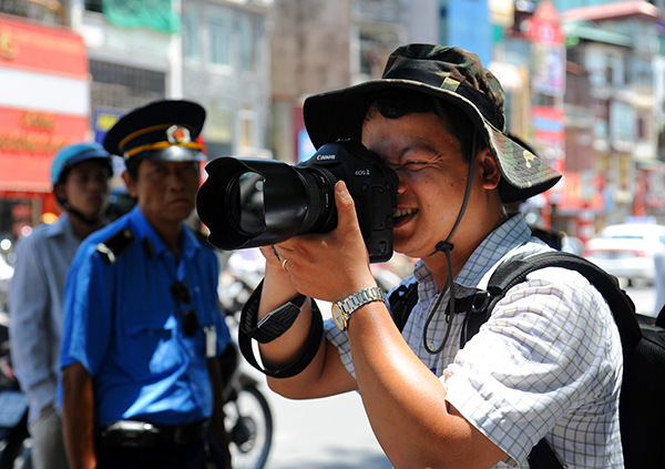 Do hiện trường bị phong tỏa nên phóng viên rất khó tiếp cận, hầu hết đều phải đứng cách xa 200 mét. Bằng kinh nghiệm của mình, tôi đã nhờ đồng nghiệp giữ ba lô đựng máy, trong vai một người có trách nhiệm đảm bảo an toàn cho khu vực, tôi sử dụng điện thoại để chụp ảnh. Cứ thế, tôi ung dung đứng chụp ngay tại hiện trường mà không bị ai mời ra cả, trong khi các phóng viên khác vẫn rất khó khăn tìm cách tiếp cận khu vực nhà sập.