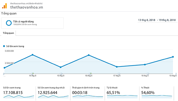 | Con số kỷ lục về Google Analytics của báo Thể Thao và Văn hóa trong tuần đầu diễn ra ASIAD 2018 |