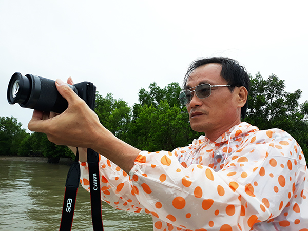 | Trưởng CQTT Cà Mau Quách Kim Há (áo kẻ ca rô) tác nghiệp tại Mũi Cà Mau |