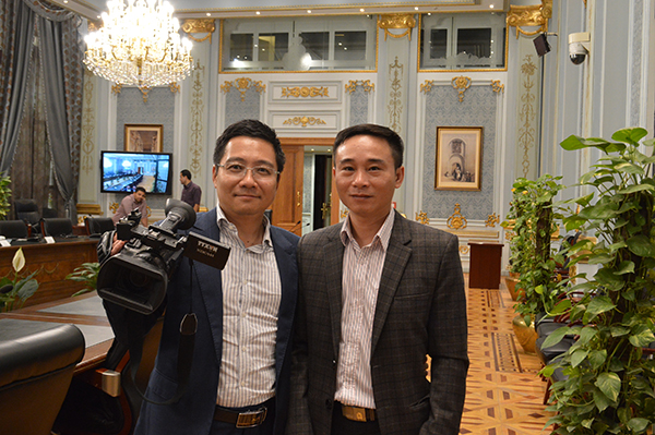 | Phóng viên Anh Tuấn, Nguyễn Trường tại trụ sở Quốc hội Ai Cập, tháng 5/2018 |