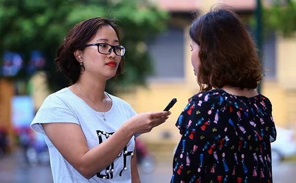 | PV Thu Phương thực hiện phỏng vấn tại hiện trường |