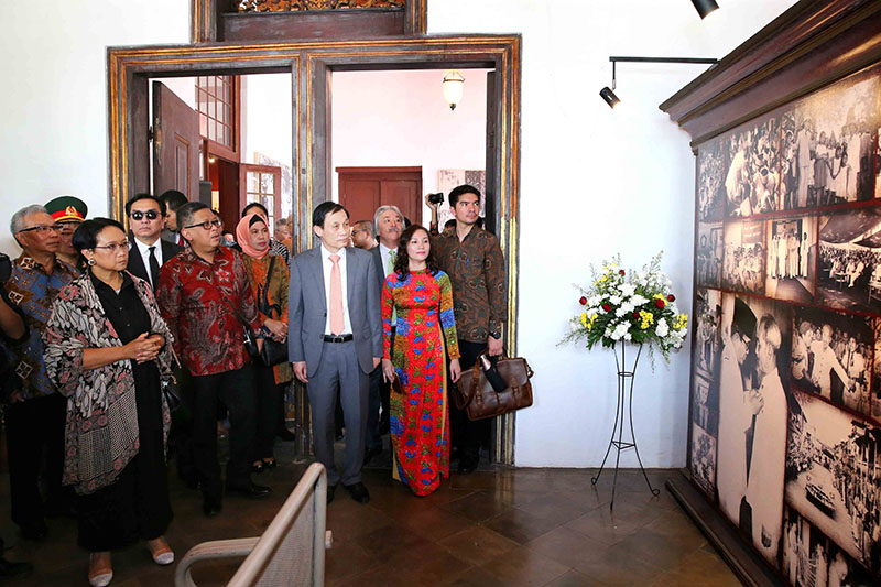 Trong khi đó, Bộ trưởng Ngoại giao Indonesia Retno Marsudi khẳng định: “Việt Nam là người bạn tốt của Indonesia. Chúng ta cùng là các quốc gia thành viên ASEAN. Năm sau chúng ta sẽ kỷ niệm 65 năm quan hệ ngoại giao và cùng là thành viên không thường trực Hội đồng bảo an Liên hợp quốc. Đây không phải là lần đầu tiên Việt Nam và Indonesia cùng tham gia ở vị trí này. Do vậy, hôm nay, tôi hân hạnh có mặt trong buổi lễ kỷ niệm này, kỷ niệm tình bạn và mối quan hệ lâu đời, đem lại lợi ích cho nhân dân hai nước”. Bộ trưởng Ngoại giao Indonesia cũng bày tỏ sự biết ơn đối với hai vị lãnh tụ đã đặt nền móng cho mối quan hệ giữa Việt Nam và Indonesia và cho rằng nhân dân hai nước cần ghi nhớ lịch sử này.