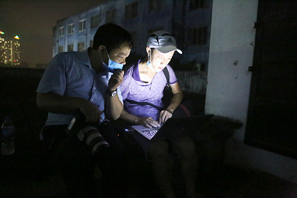 | Phóng viên Trần Thành Đạt, Ban biên tập Ảnh TTXVN và Nguyễn Anh Hiển, Ban biên tập tin Thế giới TTXVN, tạo chân máy thực hiện dẫn hiện trường tại đảo Cô Lin, tháng 1/2021 |