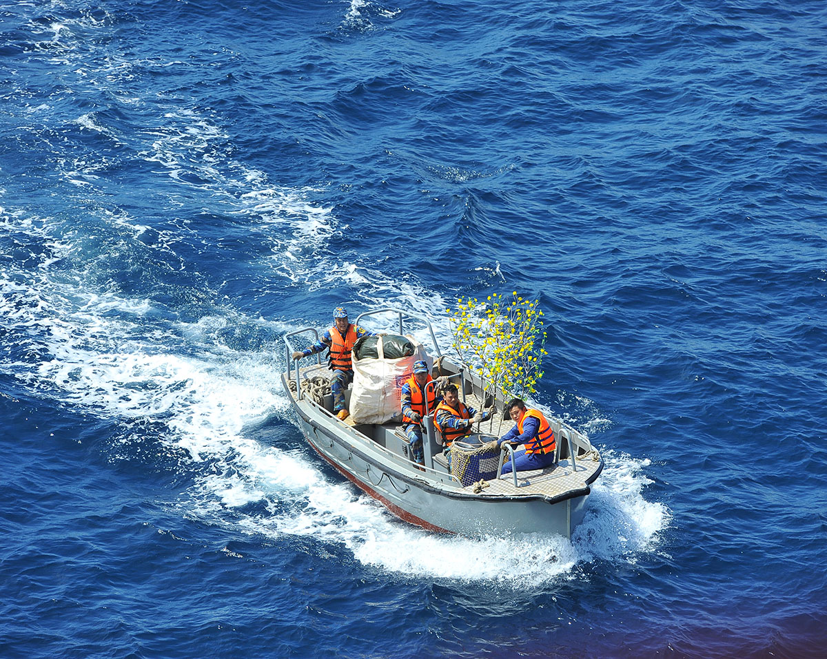 | Mang Xuân đến nhà giàn. Ảnh Minh Đức, Ban biên tập Ảnh, chụp trong chuyến ra Trường Sa, tháng 1/2021 |