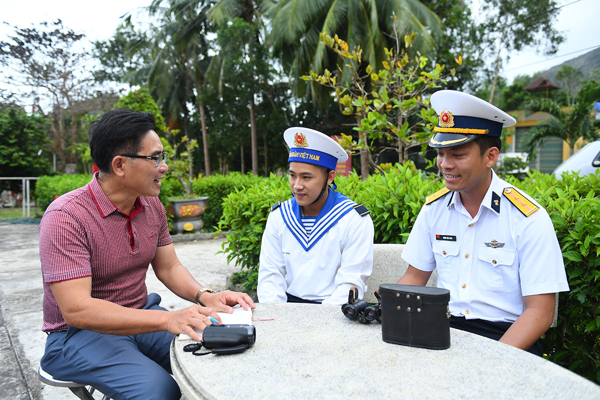 Cứ thế, tại các đảo chìm khác như Cô Lin, Len Đao, Tiên Nữ, Đá Lớn, công việc của tôi và Đạt diễn ra suôn sẻ khi nhận được sự hỗ trợ từ thủ trưởng đoàn công tác, thuỷ thủ đoàn tàu KN-490 cũng như cán bộ, chiến sỹ và người dân tại các đảo. Nhắc tới đây, tôi lại nhớ tới lời của Đại tá Lê Đình Hải, Trưởng đoàn công tác: “Năm nay, do tình hình dịch COVID-19 còn nhiều diễn biến phức tạp nên đoàn công tác không có nhiều anh em phóng viên. Vì vậy, dù còn nhiều khó khăn về thời tiết và số lượng đảo phải ra vào liên tục, mong hai đồng chí phóng viên của TTXVN đi hết các đảo. Bên cạnh nhiệm vụ chuyên môn, việc các đồng chí lên đảo cũng thể hiện sự quan tâm, động viên cho anh em đang làm việc nơi đây”.